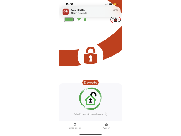 Hem Wifi üzerinden hem de olası internet kesintilerinde yakın mesafeden akıllı telefon uygulama bağlantısı ile alarm sisteminizi kontrol edebilirsiniz.